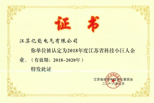亿能集团获得“2018年度江苏省科技小巨人企业”荣誉称号 |